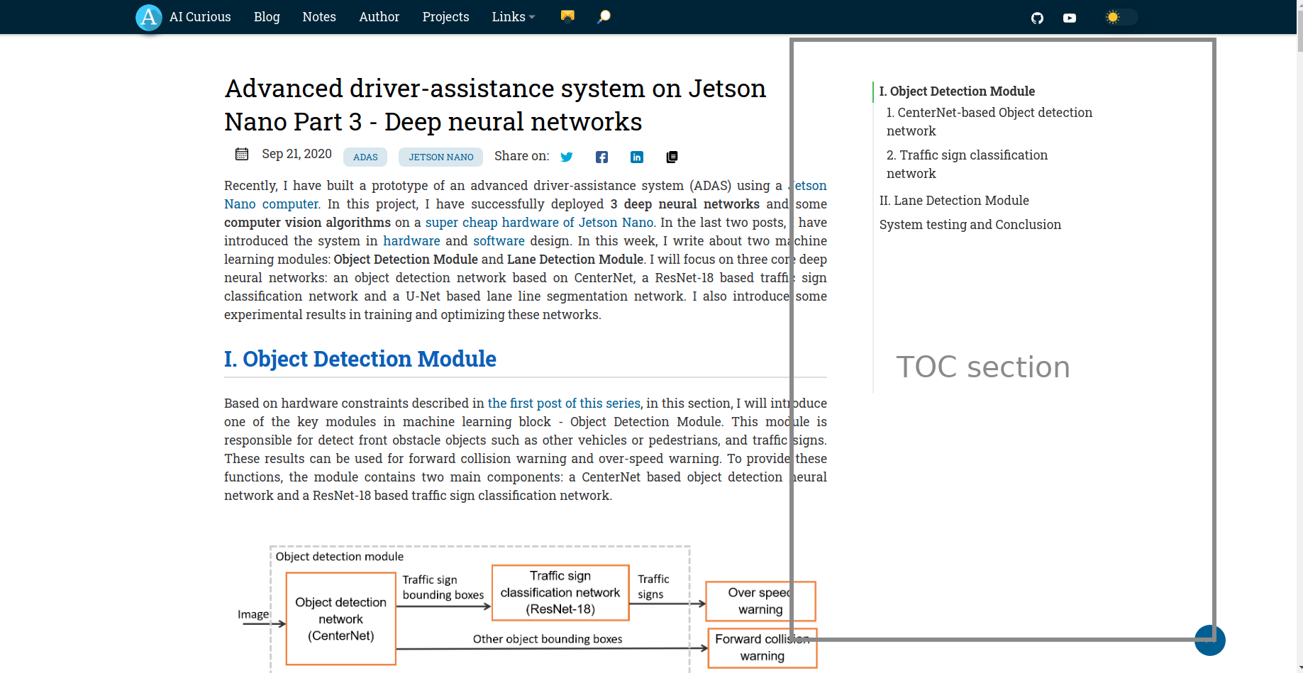 Each article can optionally have a table of contents (TOC) generated for it based on top-level links. By configuring the toc parameter in the article frontmatter and setting it to true, a TOC will be generated only for that article. The TOC will then render under the featured image.
